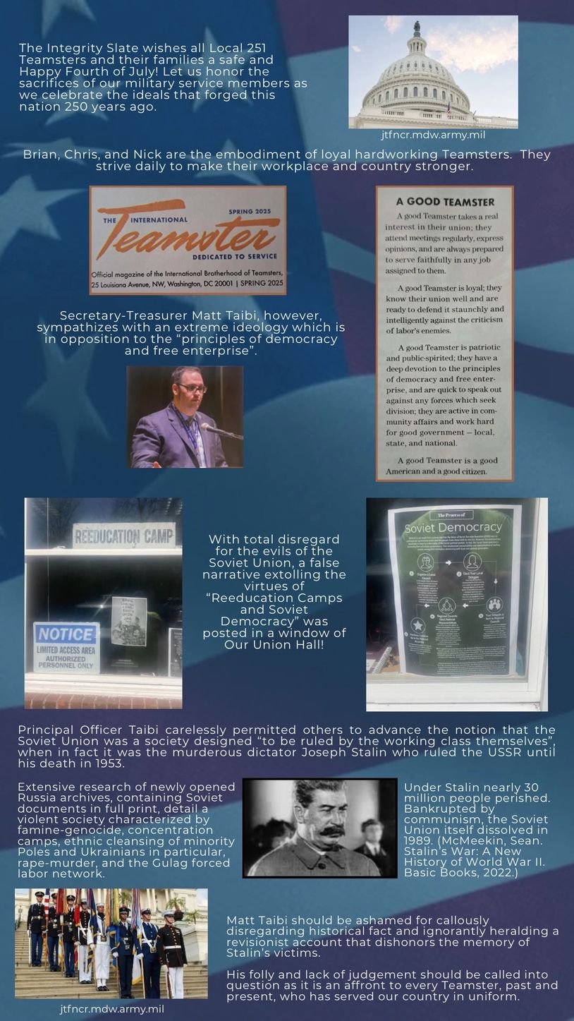 We will work for the member. ALL the members of Local 251 will ALWAYS come first. We want to hear members concerns and be totally accessible.